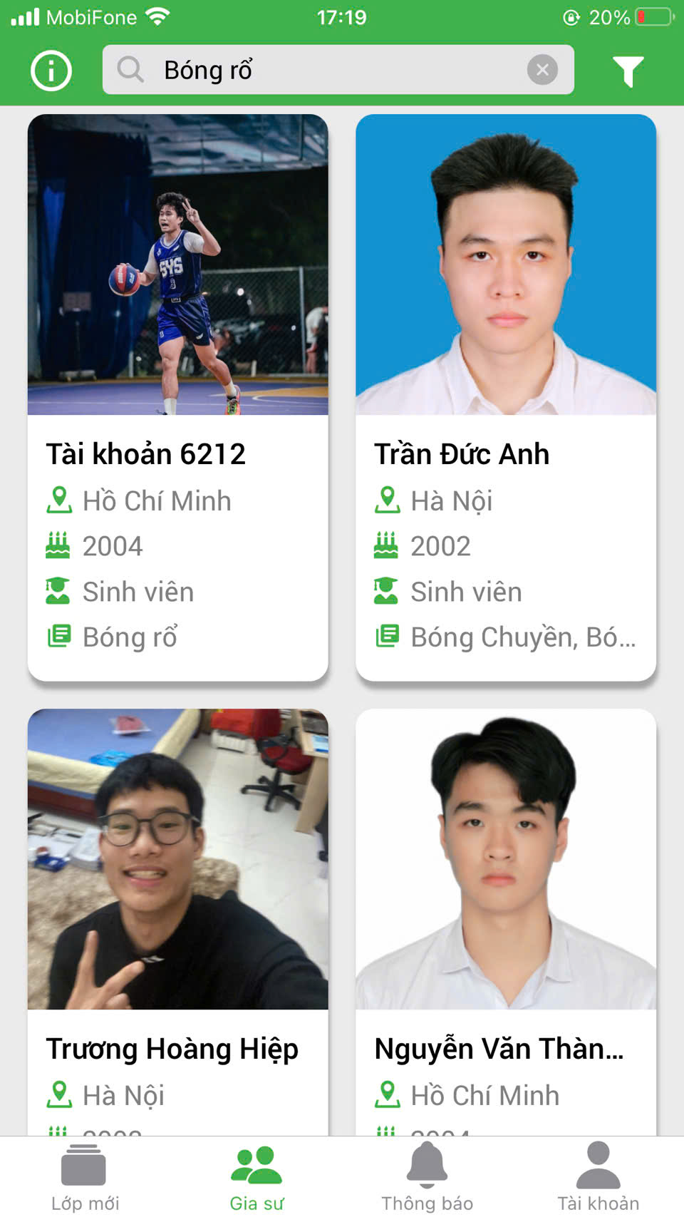 Có nhiều gia sư bóng rổ trên hệ thống, với kinh nghiệm khác nhau, có người tốt nghiệp Đại học TDTT, có người là sinh viên hoặc người đã thi đấu.