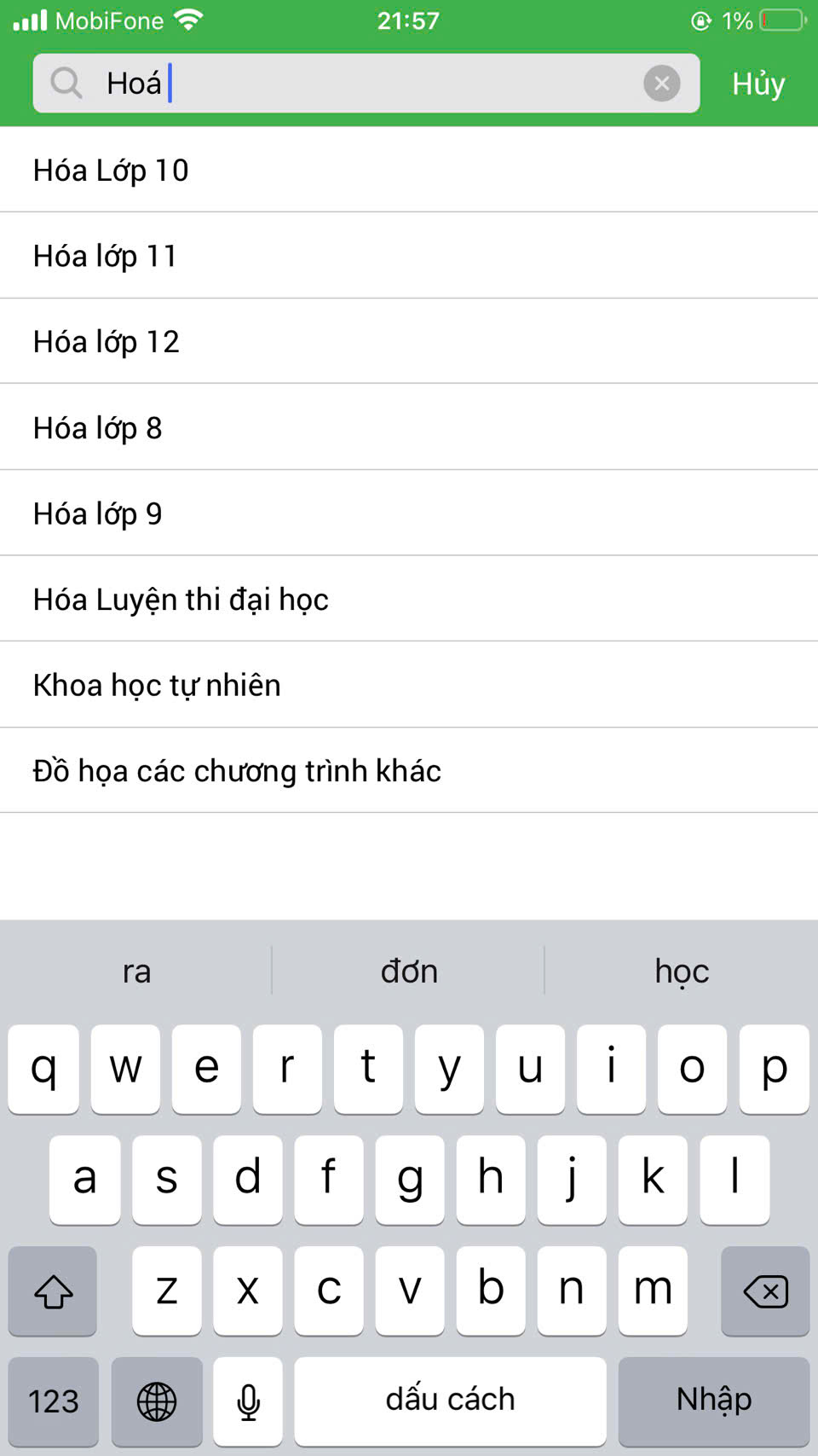 Môn học ví dụ: Lý lớp 10 hoặc HÓA LỚP 12. v.v.