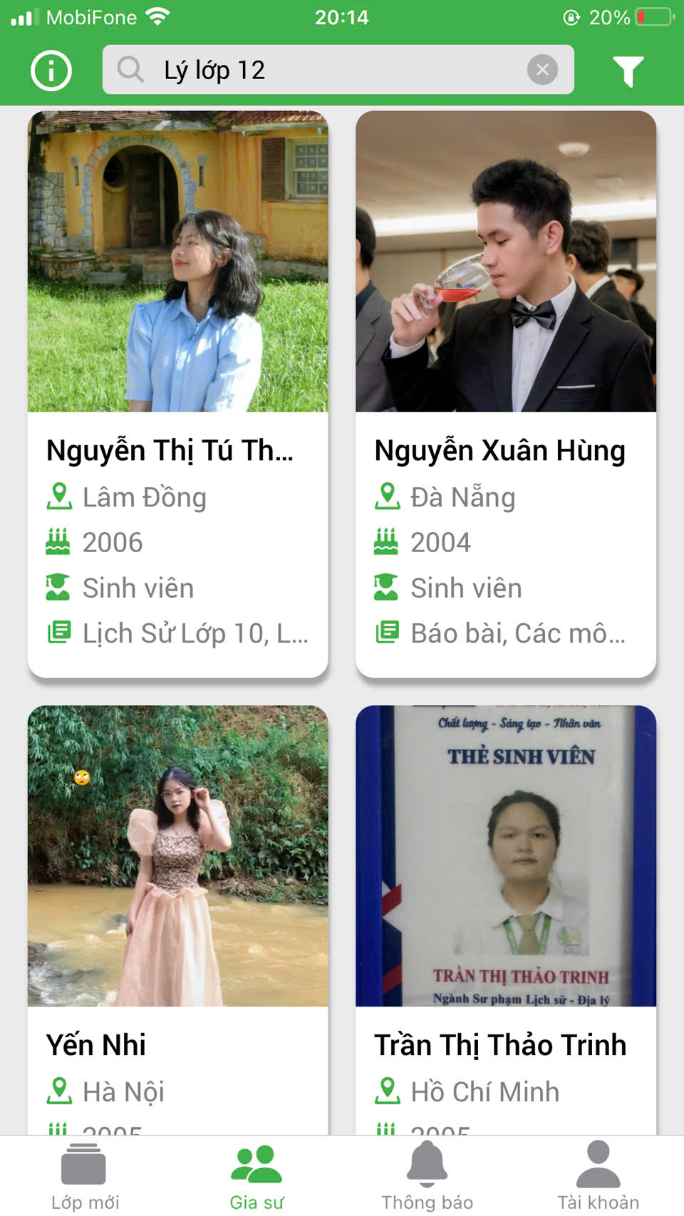 XEM PROFILE GIA SƯ DẠY LÝ LỚP 12