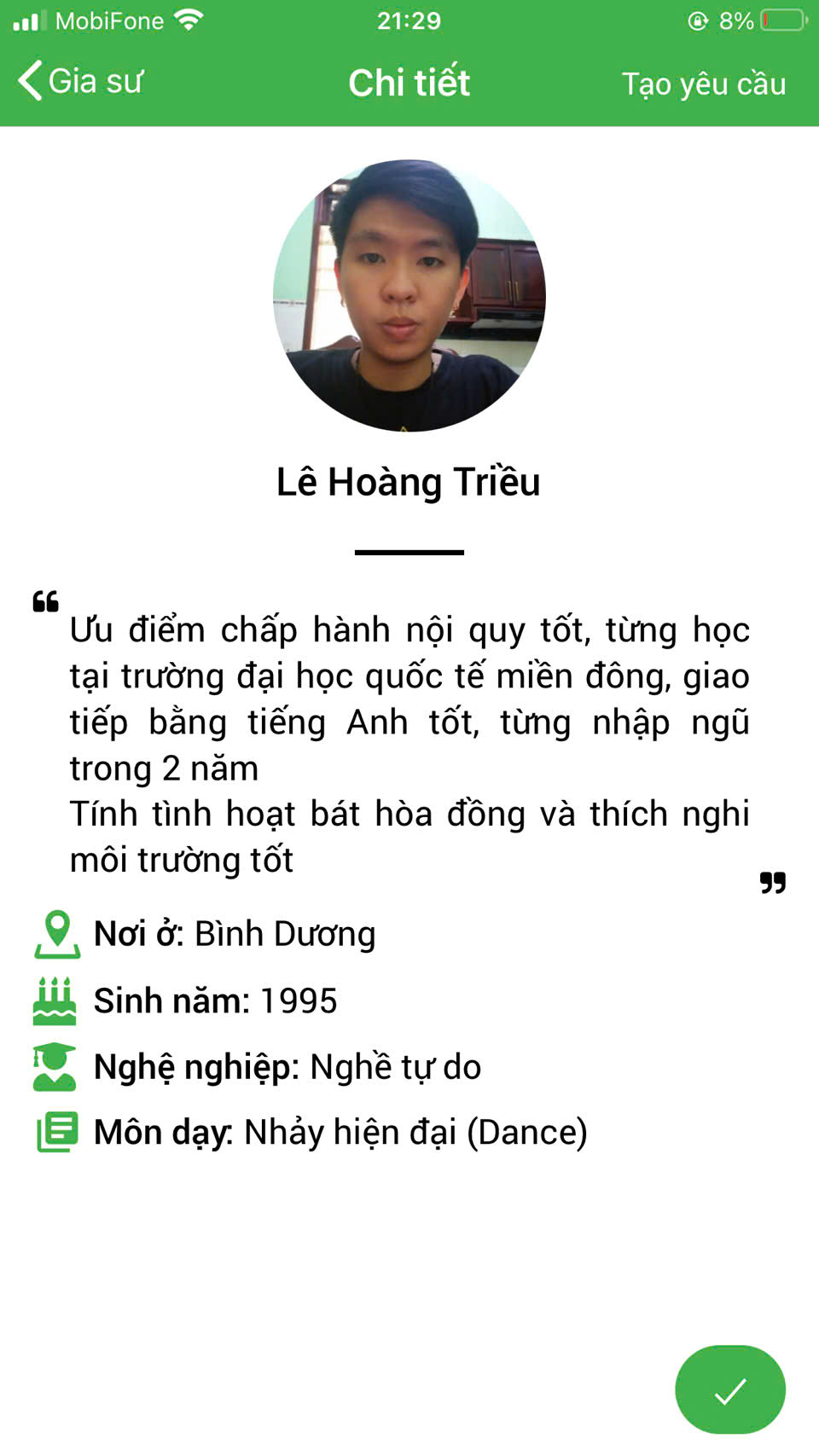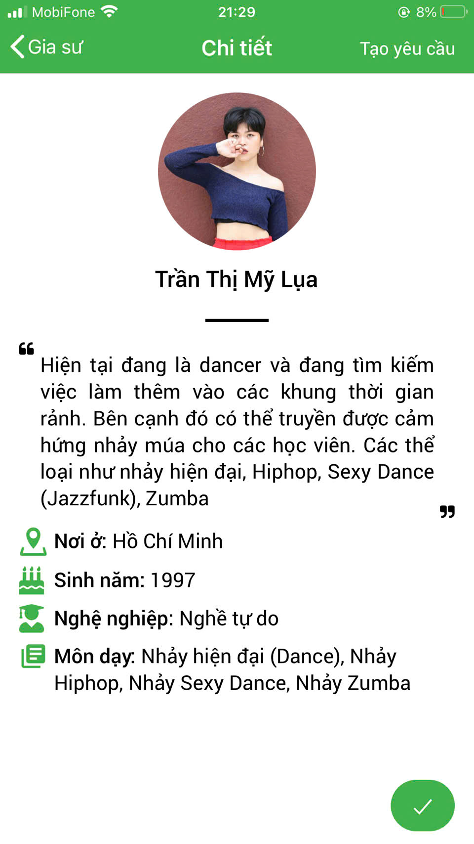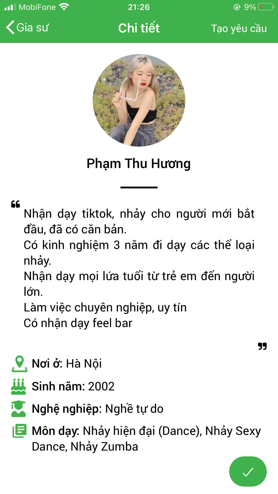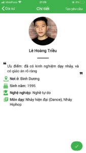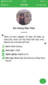 Xem Profile gia sư dạy nhảy hiện đại >>